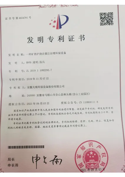 The company began expanding its R&D capabilities, emphasizing technological innovation in smoke and dust control, bag-type dust removal, desulfurization, and denitrification. During this period, Tianshun obtained multiple invention and utility model patents, laying the foundation for its high-tech status.