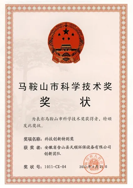 Ma'anshan Science and Technology Award-Special Award for Scientific and Technological Innovation