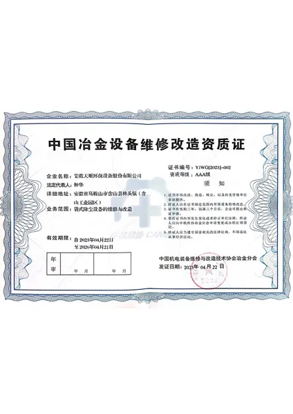 China Metallurgical Equipment Maintenance and Renovation Qualification Certificate