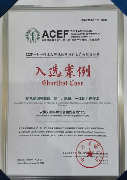 Tianshun's products were deployed across more than 20 provinces, cities, and autonomous regions in China, serving industries including cement, steel, smelting, chemical, and urban waste treatment. The company became recognized as a key domestic enterprise in the ferroalloy environmental protection and dust removal sector.